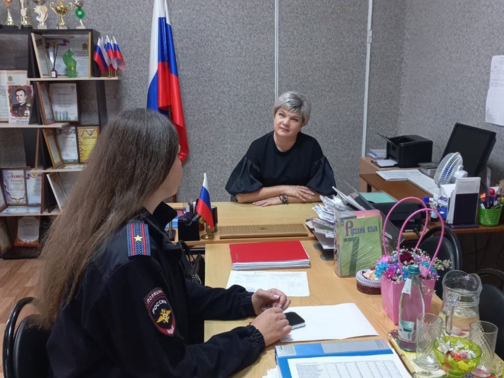 Директор школы Наталья Тренина и начальник ОПДН по Городищенскому району Наталья Ошкина обсудили следующие вопросы: планирование рейдов в семьи "группы риска"; корректировка списка детей, состоящих на учете в ОПДН; участие в родительском собрании профилактической направленности; совместная работа в кадетском классе полицейской направленности.