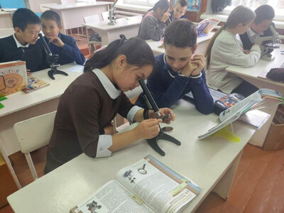 Сегодня наши пятиклассники прошли важный этап в изучении биологии - освоили работу с микроскопом.