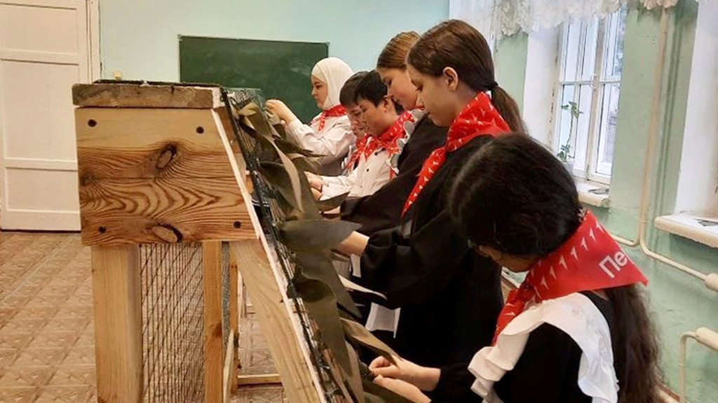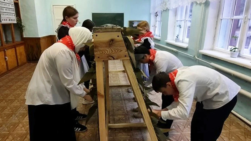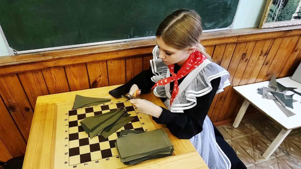 С целью формирования патриотических чувств, высоких нравственных идеалов, исторической памяти и преемственности поколений у школьников и их родителей, путем вовлечения в совместную деятельность педагоги, учащиеся и родители приняли участие в плетении маскировочных сетей для участников СВО.