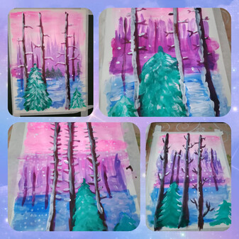 Каникулы - прекрасная пора заняться творчеством! Обучающиеся 6 класса собрались вместе, чтобы создать свои шедевры. Из-под кисти шестиклассников вышли морозные зимние пейзажи. Сказочный лес так и зовет на лыжную прогулку.