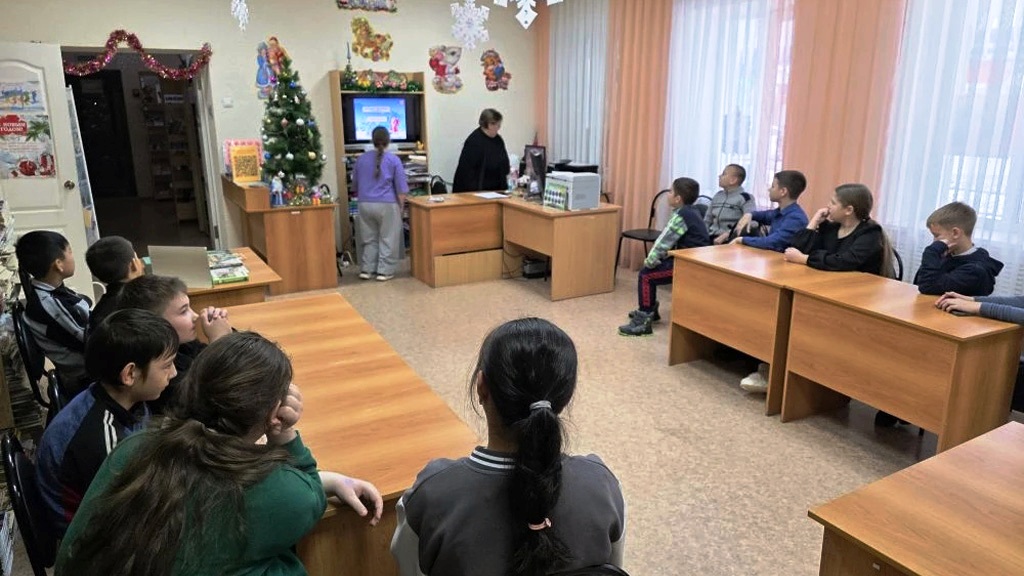 Главная » 2026 » Январь » 3 » В библиотеке р.п. Чаадаевка прошла новогодняя игра с обучающимися 5 класса "Что ты знаешь про Новый год?"