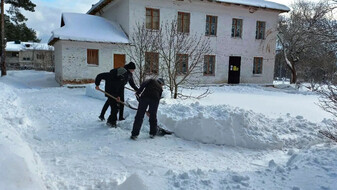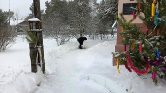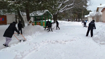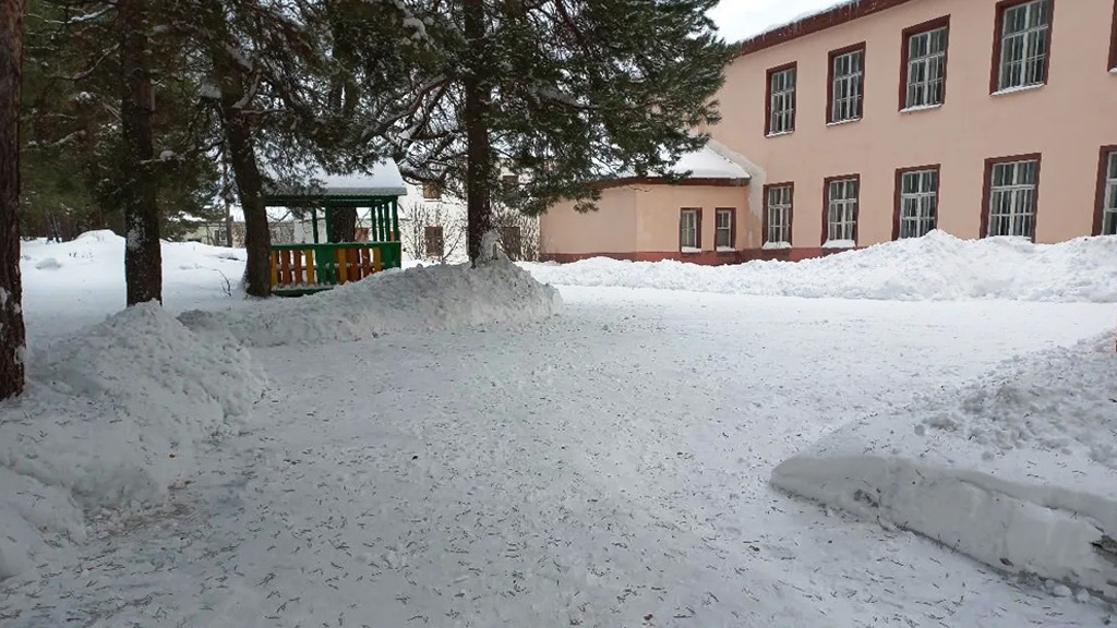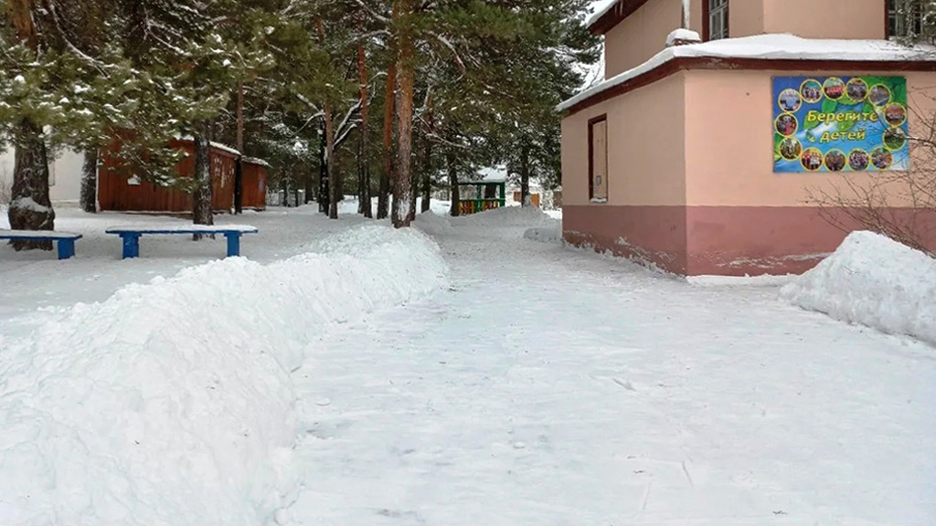 В период сильного снегопада понадобились огромные усилия как взрослых, так и детей по расчистке территории.