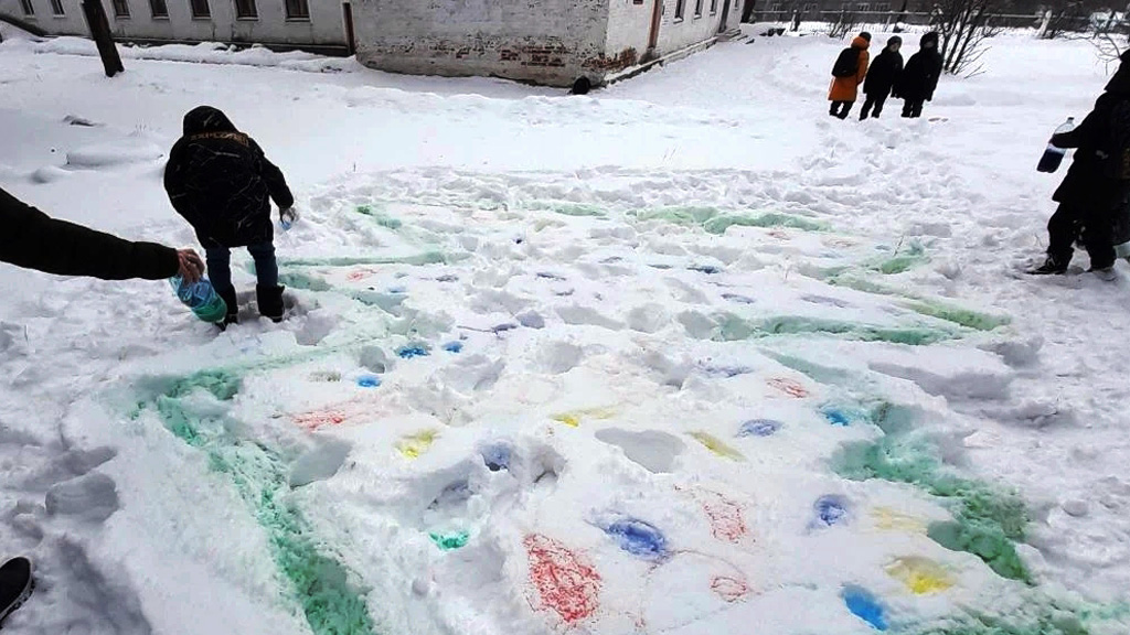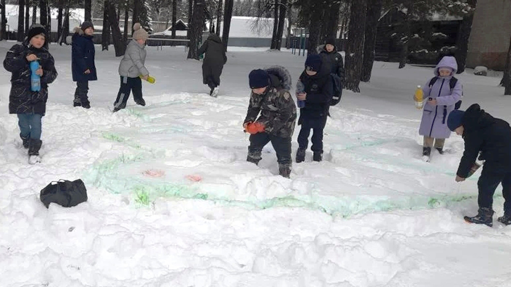 Во время зимних каникул ученики 4 класса собрались вместе в школе, чтобы нарисовать поздравительную открытку на снегу. Задорный смех эхом разносился по заснеженному двору, когда дети, одетые в яркие куртки и пушистые шапки, вытаптывали первые контуры будущего шедевра. Снег хрустел под ногами, а мороз щипал щеки, но никто не обращал на это внимания, увлеченные общей целью.