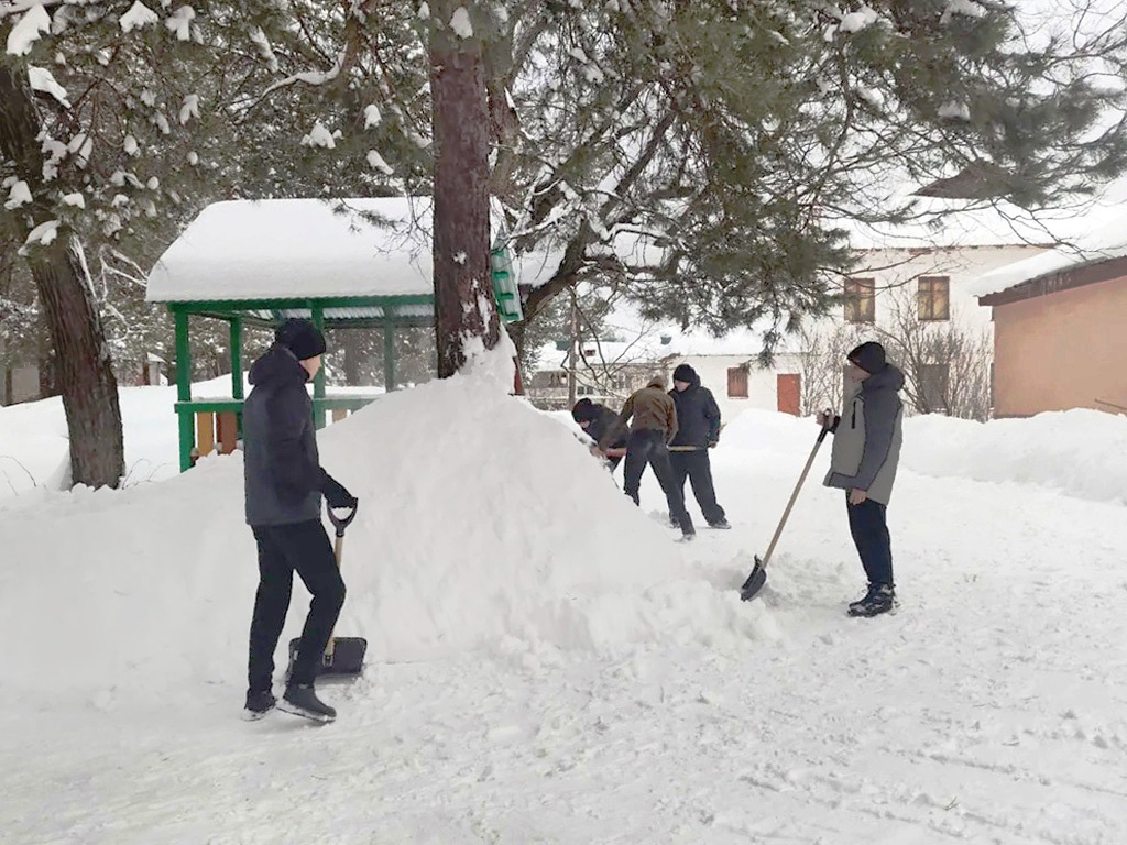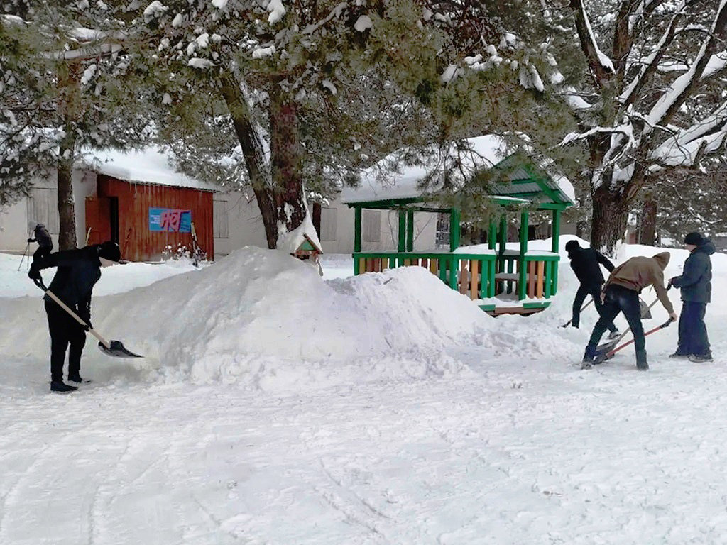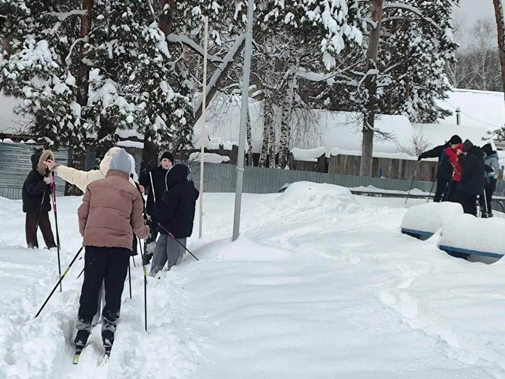 Погода настоящей русской зимы. Снег укутал дома под самые крыши пуховым одеялом, деревья в белых шапках... Наши семиклассники прокладывают старательно школьную лыжню сквозь огромную толщу снега. Нелегко!! Но, хорошее настроение берет верх, ребята помогают друг другу.